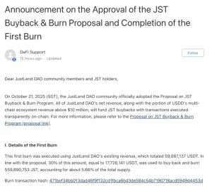 JustLend DAO Completes First JST Buyback and Burn, Ushering In a Revenue-Driven Deflation Cycle